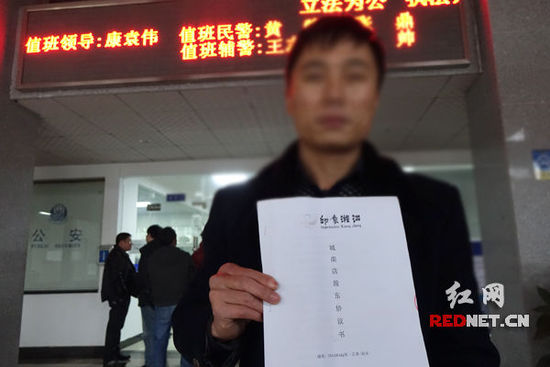 长沙芙蓉北路派出所,一股东拿着城南店股东协议书。