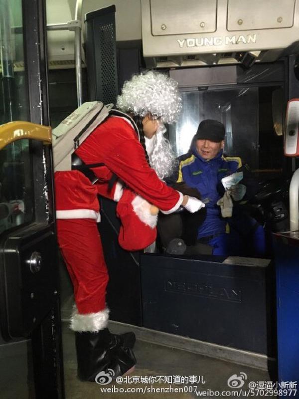 少女变身圣诞老人 给街头辛苦工作者送礼物获赞