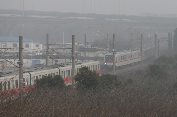 雾霾笼罩下的上海轨道交通一号线(12月25日摄)。
