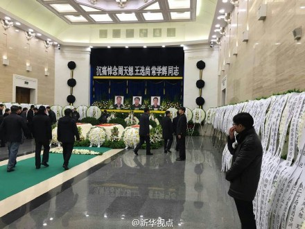 在马里恐怖袭击中遇难的三位中国公民周天想、王选尚、常学辉送别仪式27日在八宝山革命公墓大礼堂举行。北京的天空飘着雪花,逝者亲友、国家相关部委、使领馆以及中国铁建系统内单位代表800余人前往吊唁。