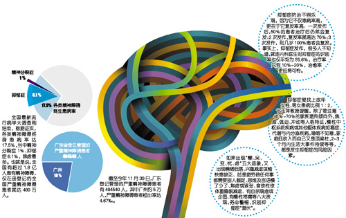 截至今年11月30日,广东登记管理的严重精神障碍患者有494540人,其中广州约5万人,严重精神障碍患者检出率达4.67%。。