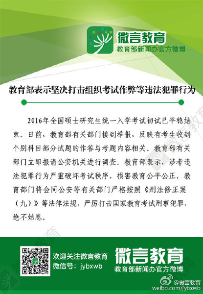 关键词:教育部 研究生考试作弊