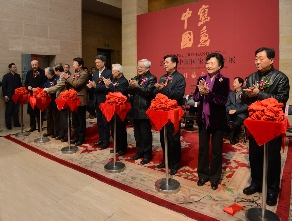 文化部党组成员、副部长董伟,中国美术家协会主席刘大为,老艺术家代表谢志高、杜大恺,中国国家画院院长杨晓阳先后致辞。周铁农、陈宗兴、蔡武、陈存根、赵少华、覃志刚、丁伟、吕章申、刘勃舒、袁运甫、詹建俊为开幕式剪彩。中国国家副院长赵卫向大家介绍了出席开幕式的全国人大、全国政协、文化部、中国文联、中国美协等相关部门领导和嘉宾。开幕式由中国国家画院常务副院长卢禹舜主持。