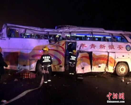 ?。玻埃保的辏保苍拢玻等障?,江苏南京,昨天晚上9点半左右,在宁杭高速上发生一起重大交通事故,一辆大客车刹车失控撞上路中间的隔离栏失控,车上多人被甩出车外,事故造成多人死伤。据了解,这是一辆从上??戏实拇罂统?,当时行驶在宁杭高速上,方向是南京往杭州方向,距离郭庄收费站2公里处,车上共有乘客2、3十人。图片来源:视觉中国