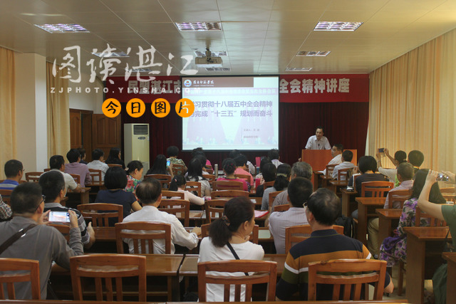 11月21日,民盟湛江市委在湛江市社会主义学院召开“民盟湛江市委学习十八届五中全会精神讲座”, 盟市委各市委委员、专委会委员、总支支委、支部支委和机关干部等参加了此次讲座,邀请了岭南师范学院吴泗教授为盟员对中共十八届五中全会和《中共中央关于制定国民经济和社会发展第十三个五年规划的建议》(以下简称《建议》)的重要内容作了综合解读和辅导。在朱罡副主委主持下,经特邀专家的解读,使与会盟员骨干对中共十八届五中全会有了更深入、细致的理解。朱罡副主委要求:全市各级盟组织要把认真学习贯彻中共十八届五中全会精神作为当前和今后一个时期的重要政治任务,将会议精神学深、学透、学实、学好,要认认真真研读,全面深刻领会。