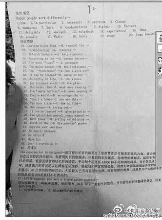 事件 开考前答案泄出 包括英语、政治