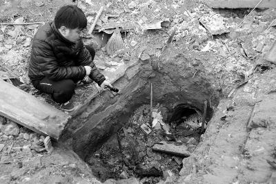 曾经住在这里的居民张琳告诉记者,最大盗坑所在方位,正是北石家村8号东屋的墙下,两个月前住户交了钥匙、但房子还没拆的时候,这里就曾被挖开过。他曾听村里老人讲,这里过去的清代古墓,有三座宝顶。最大的盗坑,应该是东宝顶的位置。