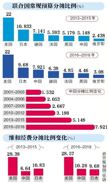 联合国“份子钱”中国升至第三位,维和预算分摊比例仅次于美国;中国承诺将及时、足额缴纳