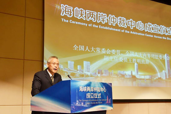 王胜明说,海峡两岸仲裁中心既是海峡两岸合作的平台,又是海峡两岸创新的窗口。仲裁中心是专门设立、主要服务于两岸企业解决经济纠纷的仲裁机构,这样的机构在大陆是第一家,它的成立是仲裁制度和工作机制创新的成果。他希望中心成立后要继续坚持创新精神,与时俱进地,推动海峡两岸仲裁中心良好发展。
