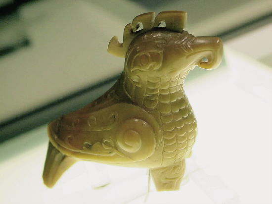 殷墟玉器的质料,有新疆和田玉、透闪石软玉、南阳玉、岫岩玉,可能还有河南密玉。而以新疆和田玉占多数;其次为透闪石软玉,南阳玉和岫岩玉甚少。那么,远在新疆的和田玉何时输入中原的呢?据《史记·李斯列传》,李斯于秦王政十年(公元前237年)上书秦王曰:“今陛下致昆仑山之玉,有随和之宝……此数宝者,秦不生一矣?!笨杉赝骋恢泄?,已有新疆玉输入秦地(中原地区)。郭宝钧先生据《穆天子传》有穆王登昆仑的传闻,认为“昆仑玉进入中原或可上溯到殷周之间?!备竞媚怪谐鐾劣薪隙嗟挠眯陆吞镉褡脸傻挠衿髦な?,和田玉输入殷墟最迟在殷王武丁时代。据“夏商周断代工程”的学者推算,武丁在位的绝对年代为公元前1250至前1192年。