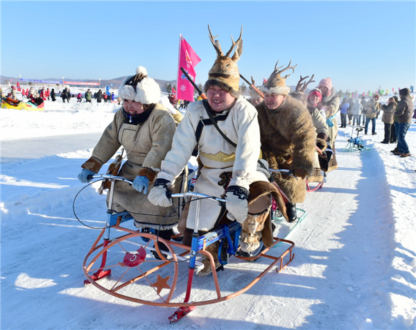 “伊萨仁”鄂伦春语“集会”之意?;疃?个月,陆续开展鄂伦春民俗技艺展、冰雕展、雪上冲浪等冰雪娱乐项目。据统计,2014年至今,呼伦贝尔冬季旅游接待国内外游客193万人次,同比增长24.4%。
