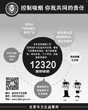 昨日,北京晨报记者从市卫生监督部门获悉,本市将陆续发放千余块医疗机构控烟提示牌。同时,长期致力于控烟的“新探健康发展研究中心”也于昨日正式发布四款“图形警示上烟包”宣传品,包括公益短片等。