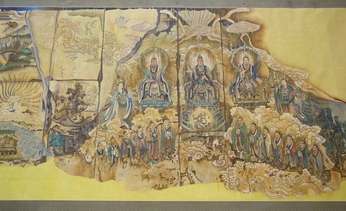 山西永济永乐宫为元代全真教三大祖庭之一,其龙虎殿(无极门)、三清殿、纯阳殿和重阳殿至今保留元代至明初的道教壁画430余平方米。永乐宫壁画集历代壁画大成,特别是完全沿袭了以吴道子为代表的唐代正统派的绘画传统,是可与敦煌壁画相提并论的宗教壁画。其后,随着宗教的衰落,中国宗教壁画也式微,人物画从神圣的寺观墙壁步入民间,进入卷轴,其雄伟的气魄也日渐消磨。