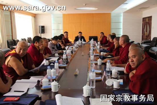 根据中央第六次西藏工作座谈会提出“做好藏传佛教工作”的要求,为促进藏传佛教教育健康发展,规范藏传佛教寺庙经师评聘和学经班管理,国家宗教事务局于10月15日、12月16日分别在甘肃兰州、云南昆明召开了四川、甘肃、青海、云南、西藏五省藏传佛教寺庙经师评聘和规范学经班管理工作研讨会?;嵋檠胛迨〔厍胤阶诮坦ぷ鞑棵拧⒉卮鸾探绱砣耸渴瞬位?,就寺庙经师评聘和学经班规范管理工作提出意见建议,为下一步工作做好相关准备。