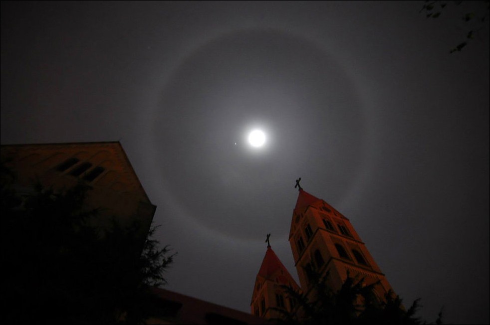 在我国,只能观测到偏食,太阳被咬了一口而已,最大的也还不到一半。日偏食和日全食虽然只有一字之差,但观感却是天壤之别。小一些的偏食如果不借助减光镜、巴德膜等设备来辅助观测,你甚至感觉不到太阳的变化;而日全食却是相当震撼,如果天气晴朗,那么你将会发现太阳渐渐被蚕食,光线随之变暗,接着太阳边缘出现贝利珠、日冕,天空变黑,星星出现,全食阶段的太阳成了黑色的圆球,周围裹着一圈白白的“棉花糖”。