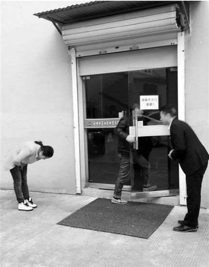 大概一个月前开始,每天早上,他都站在公司门口。只要有员工来,他都会弯腰90度深鞠一躬,嘴里说“早上好”。