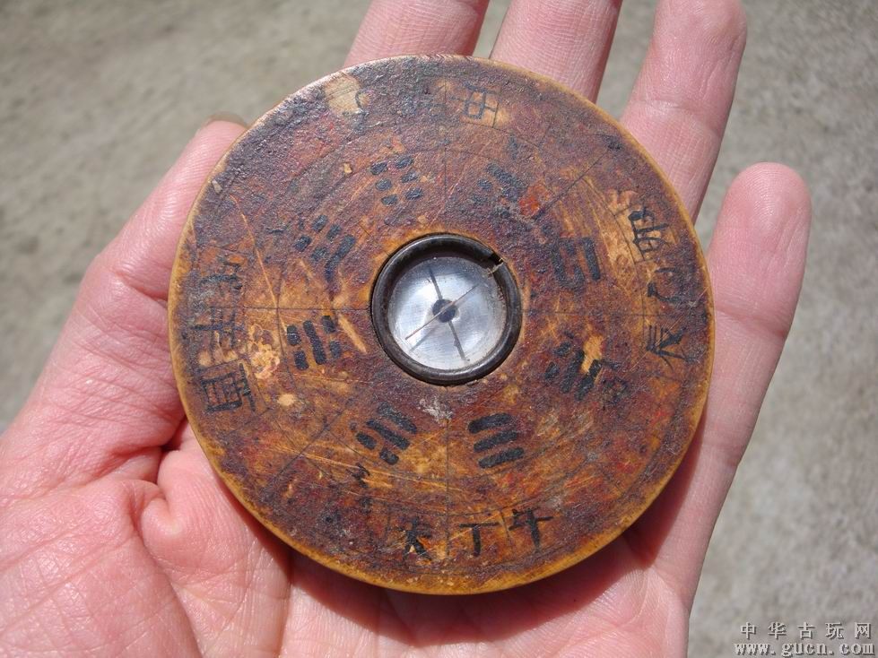 笔者收藏有一块清代的罗盘,为黄杨木制作,直径8.8厘米,底径6.6厘米,厚度2.5厘米,呈圆形。这块罗盘是笔者在古玩市场淘得的,因为 笔者平时喜欢看《易经》,并对河图洛书、阴阳五行、四象八卦等知识有浓厚的兴趣,所以就买了下来,不成想该罗盘乃是清代光绪年间之物,距今已经有一百多年的历史了。