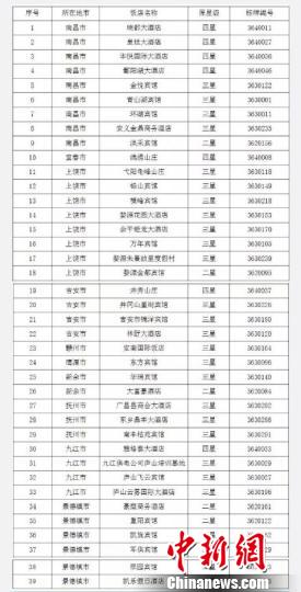 中新网南昌1月5日电 (记者 王剑)记者5日从江西省旅发委获悉,该省旅游星级饭店评定委员会研究决定,取消39家饭店的星级称稩,其中四星级7家。同时,对包括3家四星级饭店的7家不达标准或违反有关规定的星级饭店责令整改。