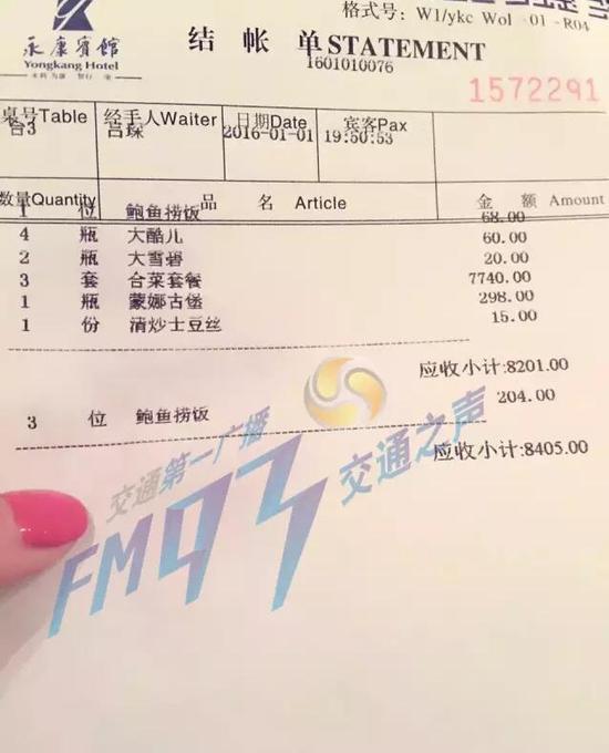 胡女士是买单人的亲戚,她说当晚是家庭聚餐:“没什么特别啊,就是几家人聚聚,共三桌,我们当时吃完饭,赶时间,然后又有亲戚抢着买单,服务员说,总共消费10859,我们也没细看,刷了卡就回家了...”