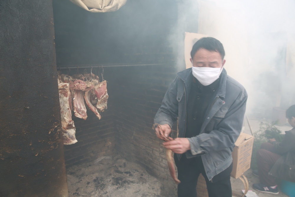 2016年1月5日上午,太阳高照,达州市通川区西外镇五里店熏制点冒起滚滚浓烟,成群结队的市民正扎堆在浓烟中熏腊肉。