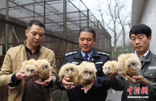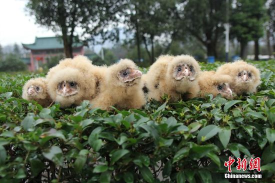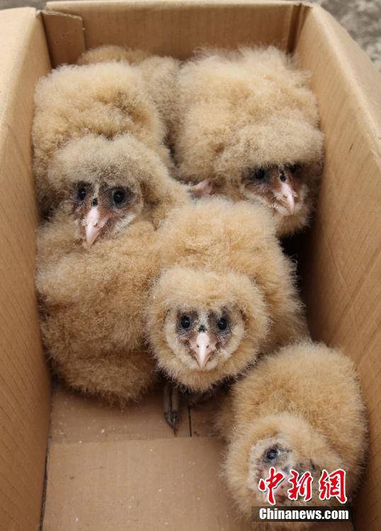 1月5日,湖南省道县新车镇下汶村一村民在山林边小路上拾得6只不知名的雏鸟。后经该县林业局工作人员鉴定,这6只雏鸟学名叫草鸮,俗称猴面鹰,属国家二级?;ひ吧铩5比?,道县林业局工作人员将6只猴面鹰移交到月岩林场国家森林公园野生动物救护站,待养护雏鸟长大后再将其放归大自然。