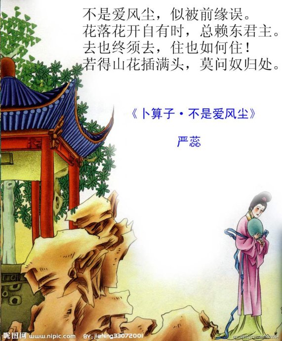 后来,朱熹改任别的官职,被调离了浙江。这时任御史的岳霖专管审理各级官员的违纪案件。他再复查此案时,十分同情严蕊的遭遇,借庆贺元旦的机会,命严蕊当场填词表白自己。被折磨得十分虚弱的严蕊不用思考,立即口吟一首词《卜算子》:“不是爱风尘,似被前缘误?;浠杂惺保芾刀?。去也终须去,住也如何住。若得山花插满头,莫问奴归处?!痹懒靥靼琢搜先锎手械男脑浮M竦么恿嫉幕?,立即下令释放严蕊从良。