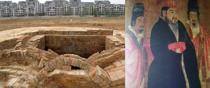 2013年3月,考古人员在扬州市西湖镇司徒村曹庄一带发现两座残存的隋末唐初砖室墓,墓葬规模不大,他们以为很快就能结束工作。然而,墓中出土的一套十三环金玉蹀躞带,令考古人员大为震惊。因为史书记载,南北朝至隋代,天子革带附十三环。随后出土的刻有“随(隋)故炀帝墓誌”的墓志和两颗男性牙齿证实,墓葬主人是隋炀帝。