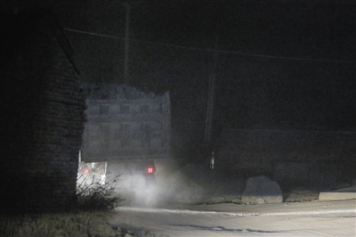 2015年12月29日晚8时许,在矿山路尚庄子村,两三个足球场大小的存料场内机器轰鸣,一台两米多高的粉石机正在粉碎石料。