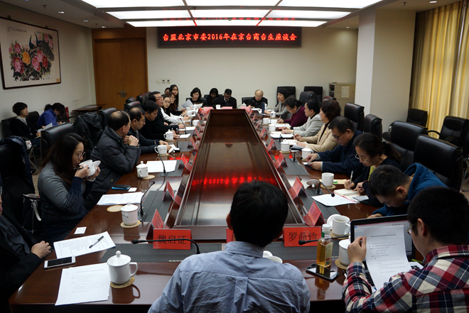 与会台商、台生对台盟北京市委多次代为反映的卡式台胞证和支付宝使用等问题得到解决表示感谢,肯定了每年召开在京台商台生座谈会的成效。大家对台资企业特别是台湾青年到大陆创业中遇到的问题与困难,在京求学、就业、创业等相关议题积极发言、踊跃研讨,并提出了一些意见和建议。台籍人大代表、政协委员认真听取意见,围绕热点问题与台商、台生交换意见,对部分涉及政策上的问题给予了及时解答。代表和委员纷纷表示,要把收集到的信息线索及时带上两会,切实反映大家的呼声与诉求。台盟北京市委领导感谢北京台协、北京台协青年会以及台商、台生和代表、委员们的积极参与,希望在2016年继续与大家一道为台资企业在京发展、台籍青年在京创业、台生在京求学就业和北京的发展与建设、京台两地的交流交往做出新贡献!台盟北京市委相关处室负责人参加会议。(文/归来·图/仇法鑫)