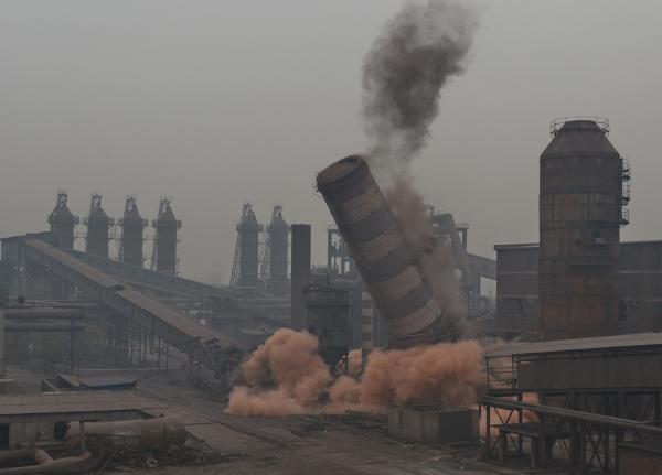 这是河北一企业高炉爆破现场。河北省省长张庆伟1月8日在河北省第十二届人民代表大会第四次会议上说,“十二五”时期,河北大力压减钢铁、水泥、玻璃等过剩产能,传统产业改造提升步伐加快,战略性新兴产业和现代服务业规模壮大,产业结构出现深度调整。新华社记者 杨世尧 摄
