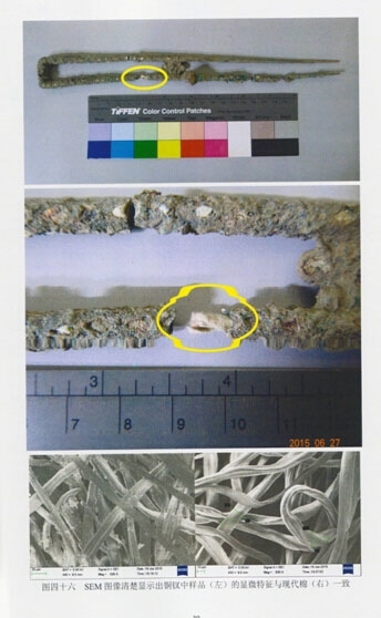 萧皇后冠饰交由陕西省文物保护研究院进行实验室考古后,近期已取得阶段性成果?!巴味狭汛β冻鲆伤泼藁ǖ奶畛湮铮晕⒐鄄旒昂焱夤馄追治黾词敲藁??!笔移浇樯?,“SEM图像清晰显示,铜钗中棉的显微特征与现代棉一致,这在考古学上有重大意义。目前出土的唐代棉花极为罕见,萧后铜钗内棉花的出现,一定程度上填补了空白。”