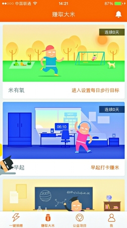 目前,像“平安云”一样的公益App层出不穷。大山是北京外国语大学的一名大一新生,热爱公益的他却囊中羞涩,在同学的推荐下,他在手机里下载了“米公益”App,“捐”出每天的行走步数,换来“大米”,再用“大米”为大山里的贫苦孩子买文具?!拔乙惶炀途枇?万步,既健身又做了公益,真是两全其美??!”大山频频在微信朋友圈里晒自己的“成绩”。