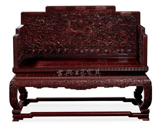 清乾隆 御制紫檀木雕八宝云蝠纹“水波云龙”宝座