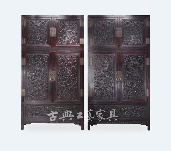 清乾隆 黄花梨云龙纹大四件柜