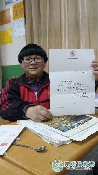云南女生给英国女王写信 获女王亲笔回复(图)