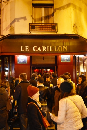 1月13日晚,人们聚集在巴黎第10区“时钟”酒馆前,庆祝其重装开业。