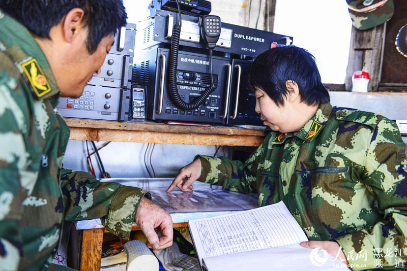 朱彩芹和丈夫一起核对当天通讯瞭望上报数据。