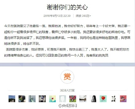 杨彩兰在微博谎称父亲在爆炸中去世,获网友"打赏"96576.44元。公诉机关认为,杨彩兰是在被举报后,再去公安部门报案,且谎称自己账号被盗,不能算自首。辩护人则认为,杨彩兰属于初犯,应以从轻判处。本案将择日宣判。(央视记者廖汨)