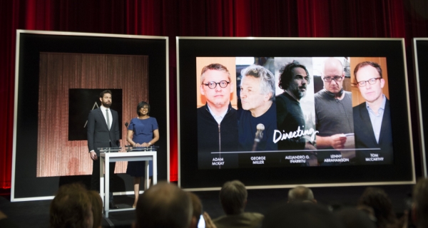 演员约翰·克拉辛斯基(左)和美国电影艺术与科学学院主席谢丽尔·布恩·艾萨克斯宣布第88届奥斯卡最佳导演提名。