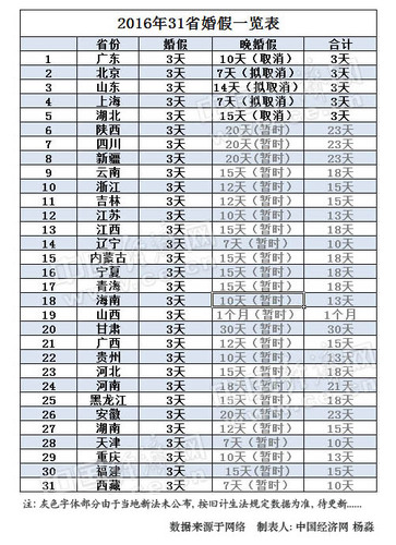 2016年各地婚假出炉 5省份明确取消晚婚假