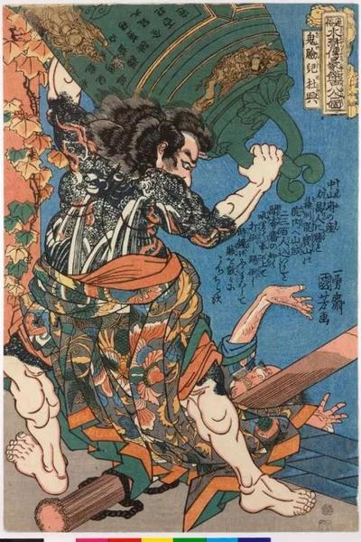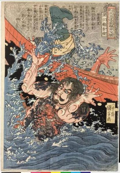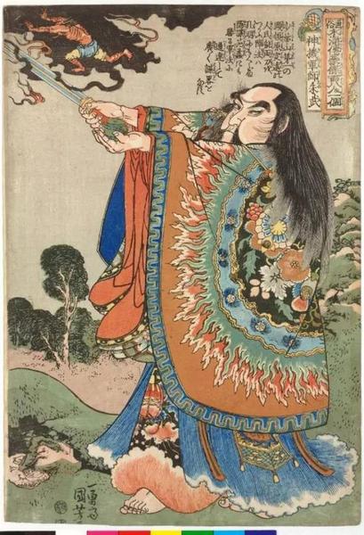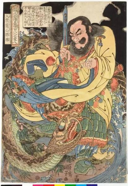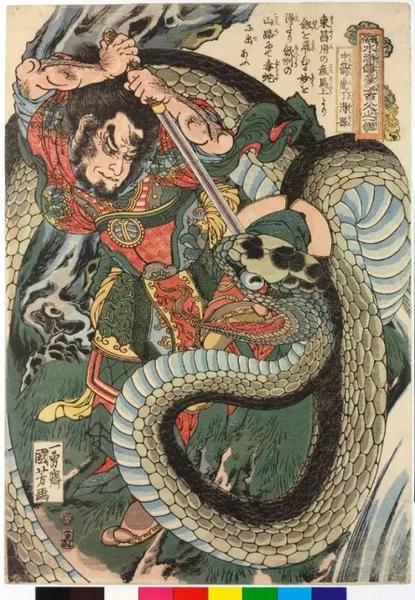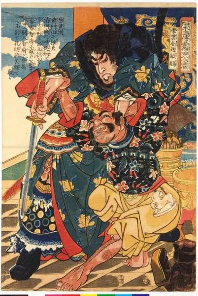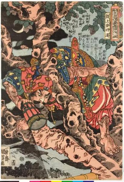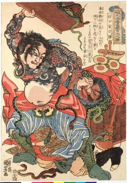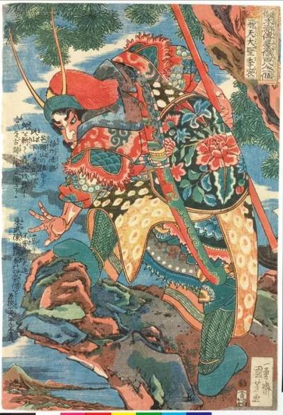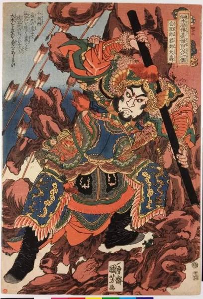 子正君后来想,原来日本画家在画中国英雄人物的时候是按照日本人的形像画的,所以这一百单八将看起来有点太不像了。不知道中国画家在画天皇或者其他什么幕府将军的时候是不是也是画得像中国人的形像?