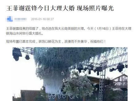 原标题:谢霆锋王菲被传16日大婚"现场照"曝光 经纪人辟谣
