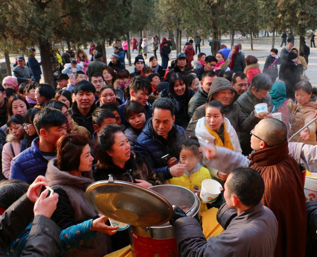 关键词:少林寺 腊八节施粥 超20万份 市民排队等待
