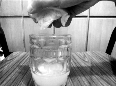 昨日,一个“饮料经纸巾搅拌会褪色”的视频在网络上热传。视频中,一名男子将橘色的汽水饮料倒入玻璃杯中,然后放入一张纸巾快速搅拌。1分钟后,杯子里的饮料呈现出白色状,而纸巾已变成橘色。北京青年报记者昨日通过实验发现,通过纸巾搅拌,一些饮料的颜色确实会慢慢变浅,而无人为添加色素的鲜榨果汁经过搅拌,褪色现象并不明显。