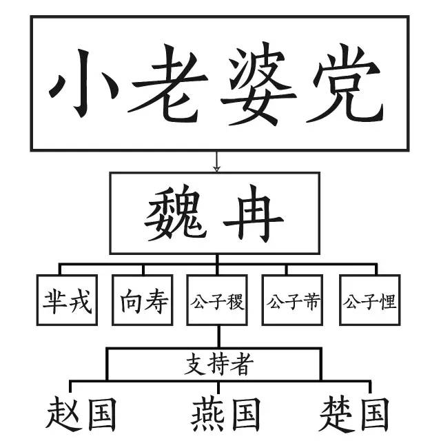 魏冉为什么非要立公子稷呢?这事和一个女人有关。这个女人是秦惠文王的嫔妃“芈(mǐ,米)八子”?!鞍俗印笔乔毓蠊慑囊恢止僦啊5缡泳纭敦略麓分胸略碌睦吩?,就是这位“芈八子”。她本是楚国人,陪嫁到秦国,成了秦惠王的妃子,秦昭襄王即位后,这位芈八子就成了宣太后。魏冉是宣太后同母异父的长弟,秦昭襄王公子稷是宣太后的儿子,这就是魏冉鼎力支持公子稷继位的根本原因。