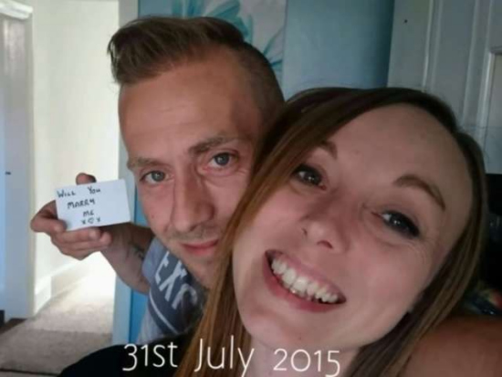 报道称,38岁的雷(Ray Smith)和33岁的女友克莱儿(Claire Bramley)同居多年,雷在去年6月得知女友怀孕后,就开始规划秘密求婚计划。他在每次和女友自拍时、或是帮女友拍独照时,都会偷偷在镜头前展示“你愿意嫁给我吗?”的小字卡,但都没让女友发现。
