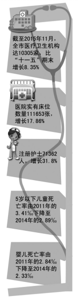 此外,“十二五”期间,公立医院进一步深化改革,截至2015年11月底,全市共建立区域医联体43个。