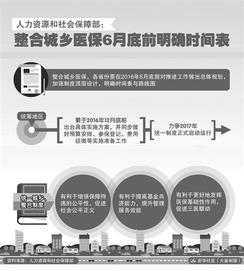 关键词:人社部 整合城乡医保 时间表
