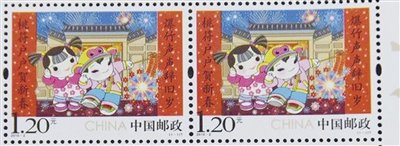 2016年1月10日《拜年》邮票在各大邮局正式发售,此次发行的是《拜年》系列邮票的第二套,邮票依然由清华美院教授吴冠英设计,票图延续了2015年《拜年》 邮票的风格。票面中人物身着南方传统服饰,“欢欢”戴着“猴帽”,双手高举竹竿,挂着正在燃放的鞭炮,炮花如绽放的春之花,绚丽多彩?!跋蚕病彼治娑?, 一脸喜悦,笑逐颜开。呼和浩特晚报记者在走访中发现,这样一张较为符合中国传统风格的主题邮票,一经发售就引起很多邮票收藏爱好者的喜爱。