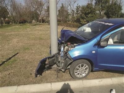 小两口车内嬉戏 撞电灯杆出车祸致妻流产(图)
